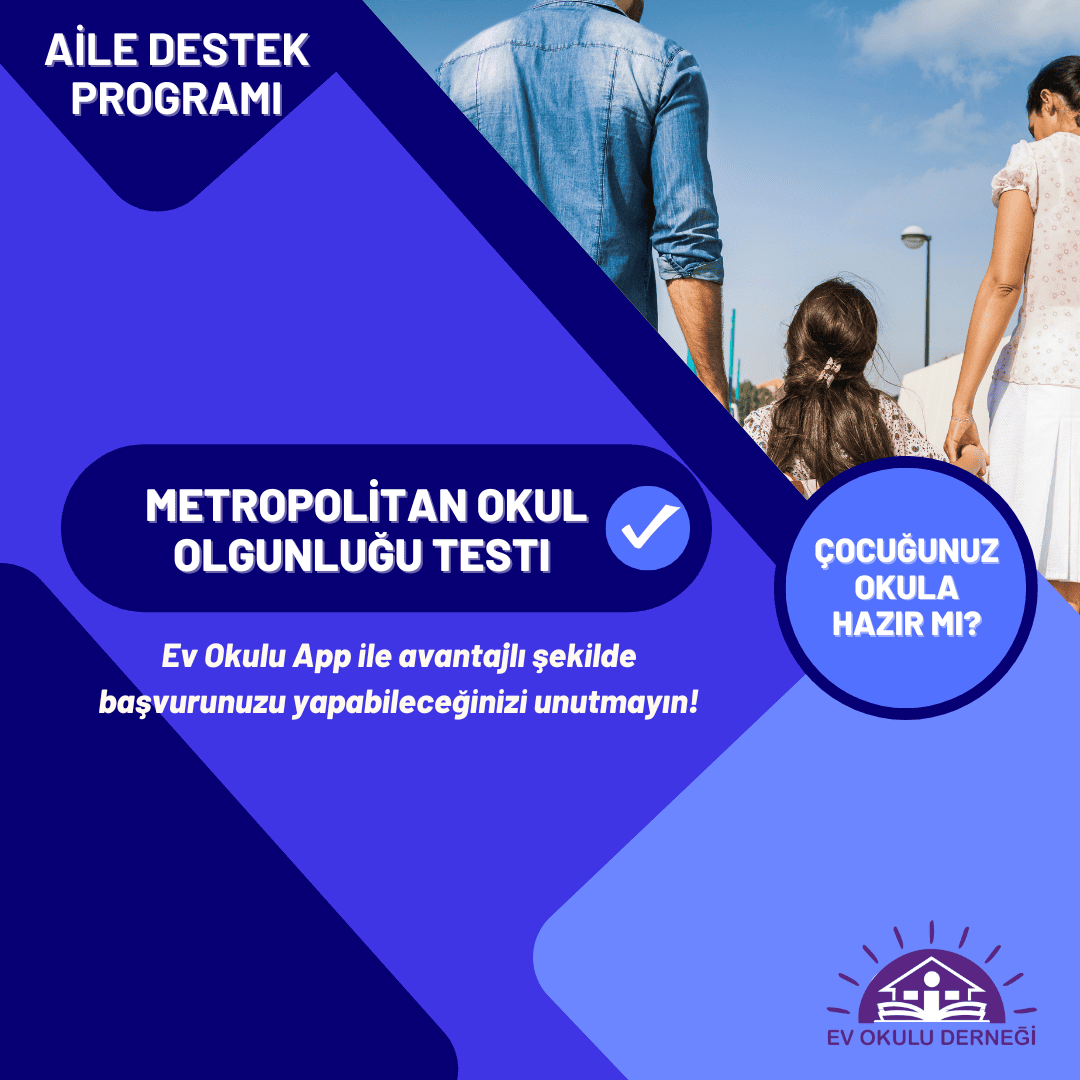 ÖNEMLİ NOT: Metropolitan Okul Olgunluğu Testine Ev Okulu App uygulaması içerisindeki “Shop” kısmında yer alan “Zeka-Yetenek Testi” bölümünden başvurabilirsiniz.